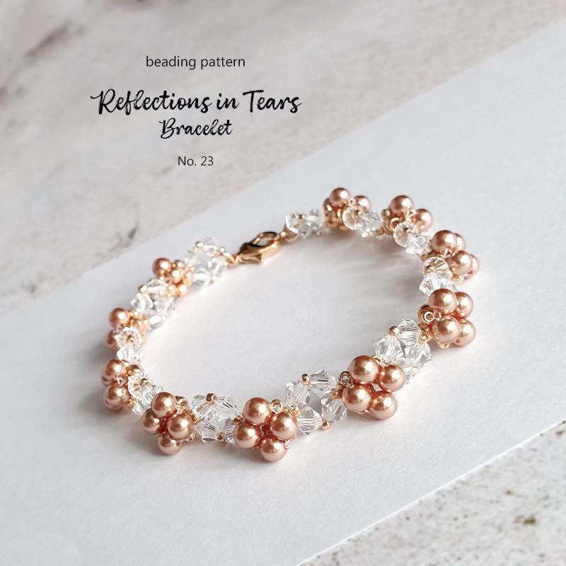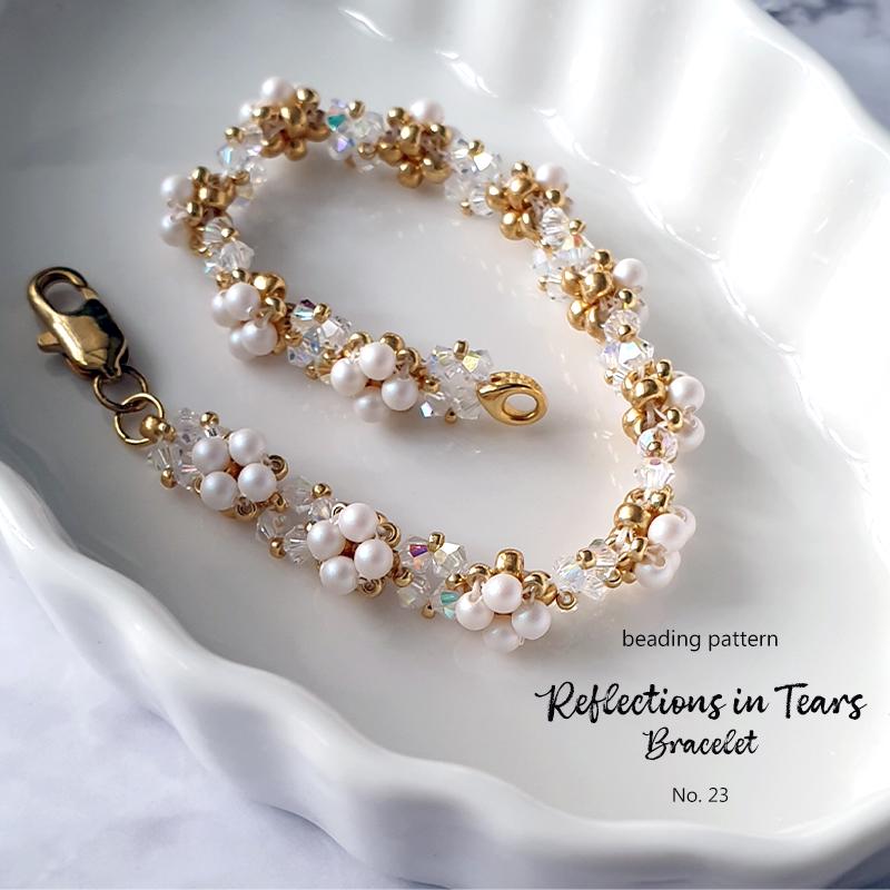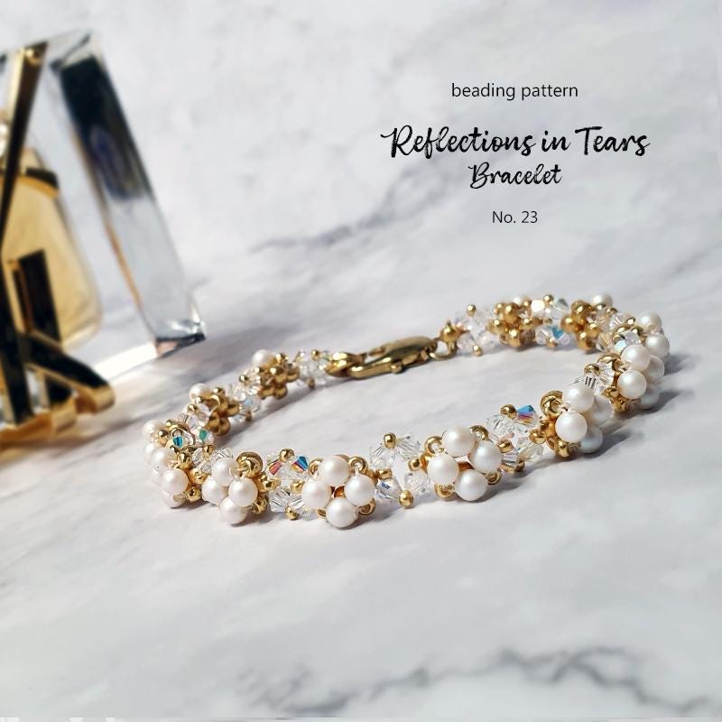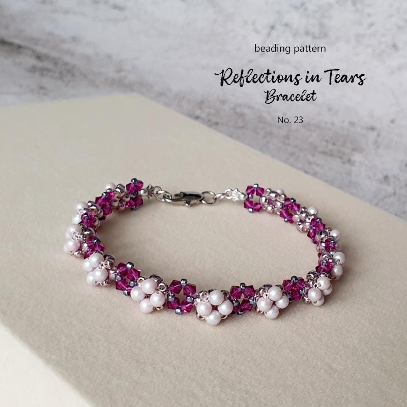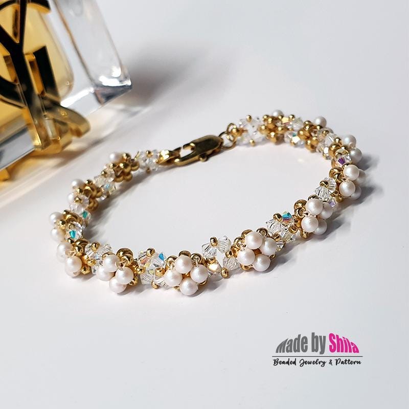 This pattern can be an exquisite piece for a festive occasion, even Christmas Eve. It's a piece that a beginner can easily create. Those who like Boho chick style only need to replace the crystals with colored fire polish or pressed beads. The project is recommended for beginners, but has the advantage of Right Angle Weave (RAW) and Cubic Right Angle Weave (CRAW). The bracelet closes with a simple lobster clasp, attached by open jump rings. Adjusting the bracelet's length by adding more or making fewer crystal units is easy.