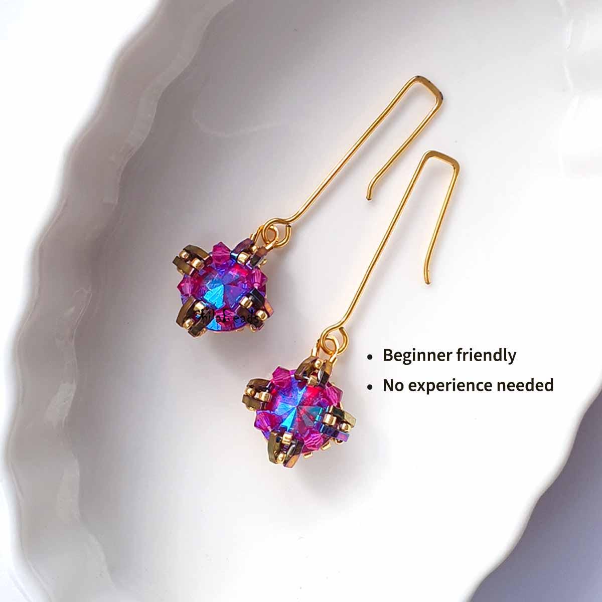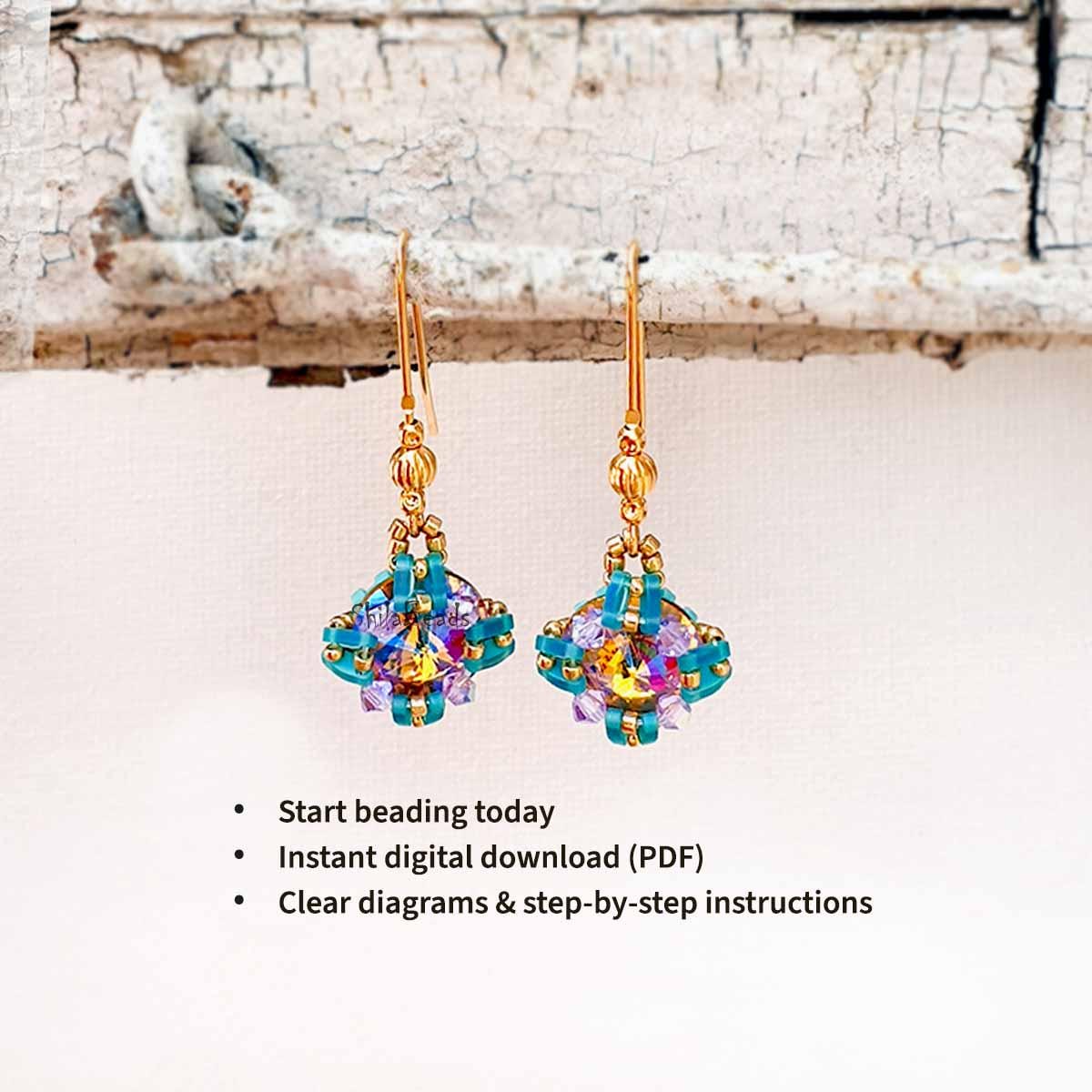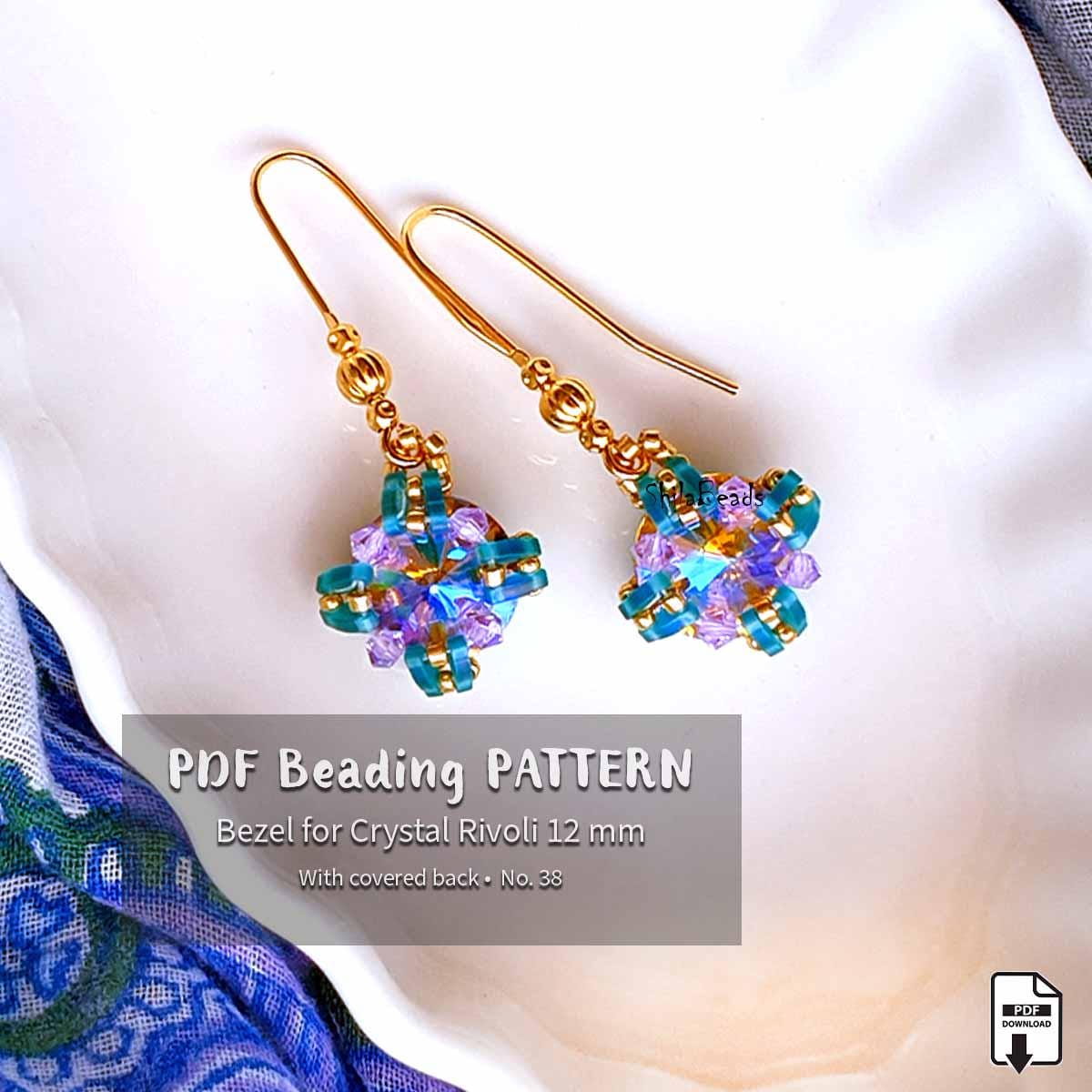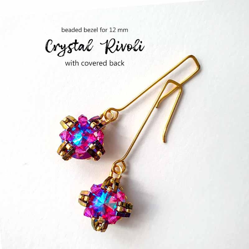 ★★★ This beaded setting is created using seed beads, Delica beads, Quarter Tila beads, and crystal bicone beads surrounding a 12 mm Rivoli stone. It is a quick and easy project. The setting can easily be transformed into earrings, or you can get creative and turn it into a unique bracelet or pendant based on your imagination.