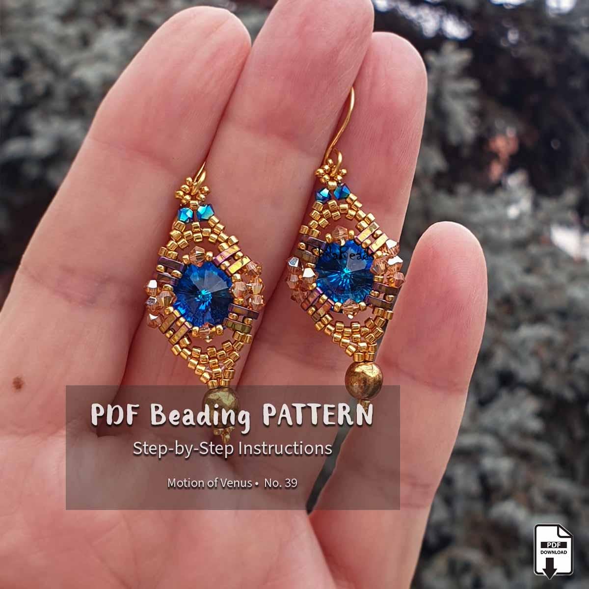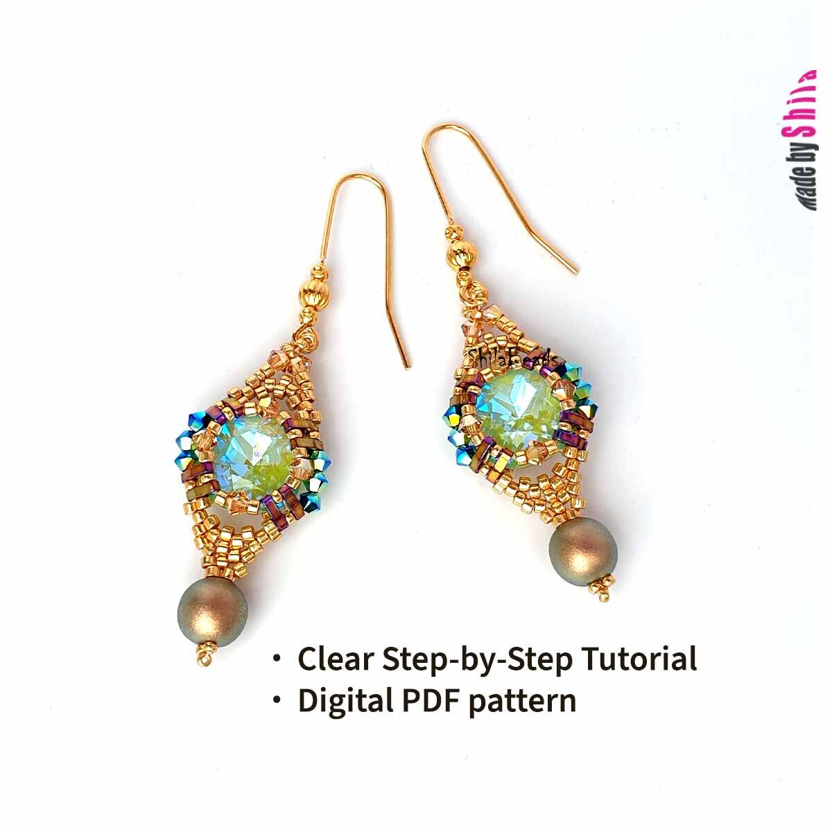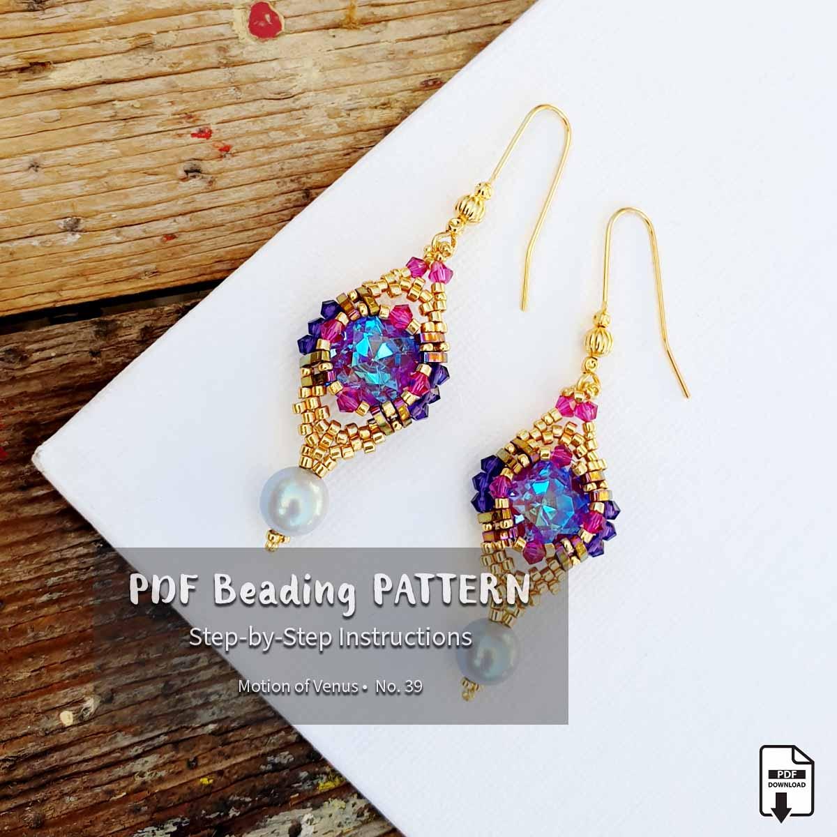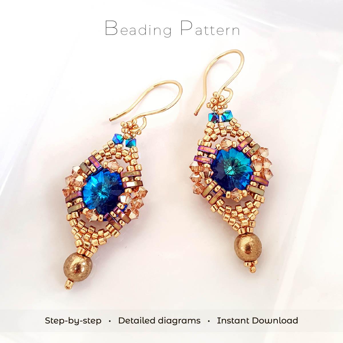 ✨ Instant PDF beading pattern for elegant crystal earrings made with peyote stitch.