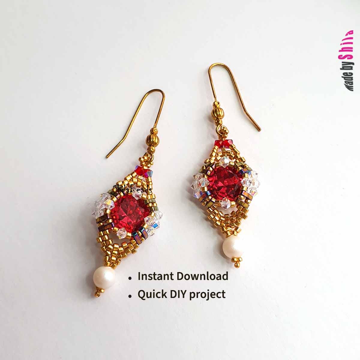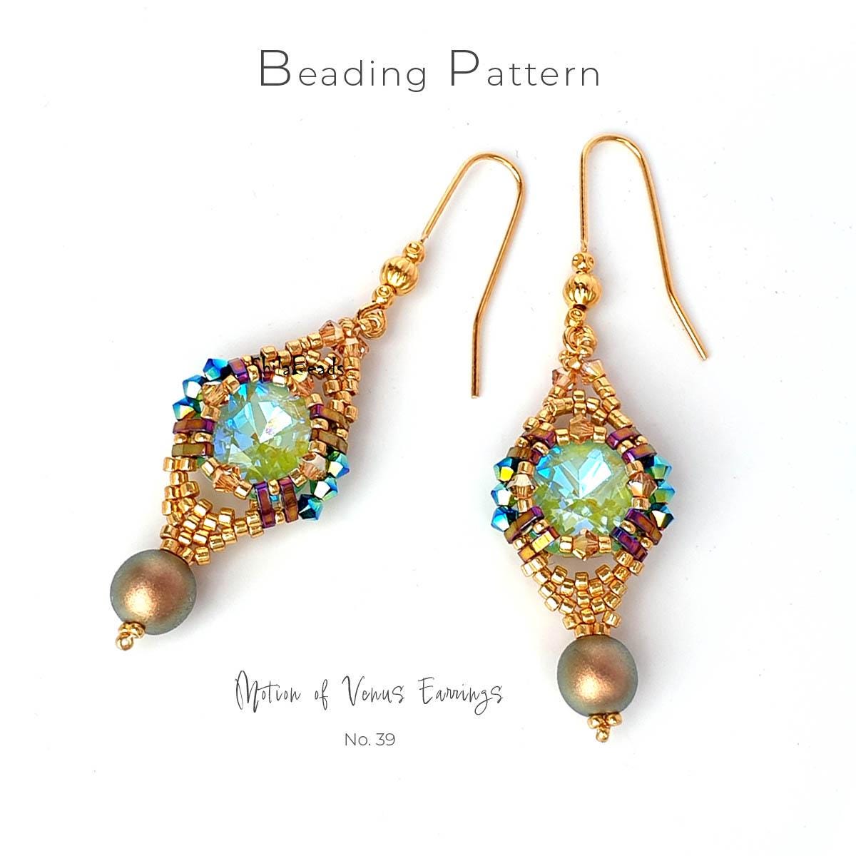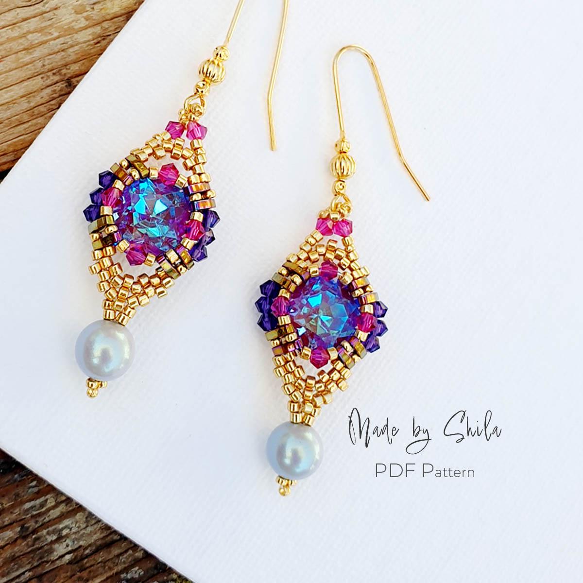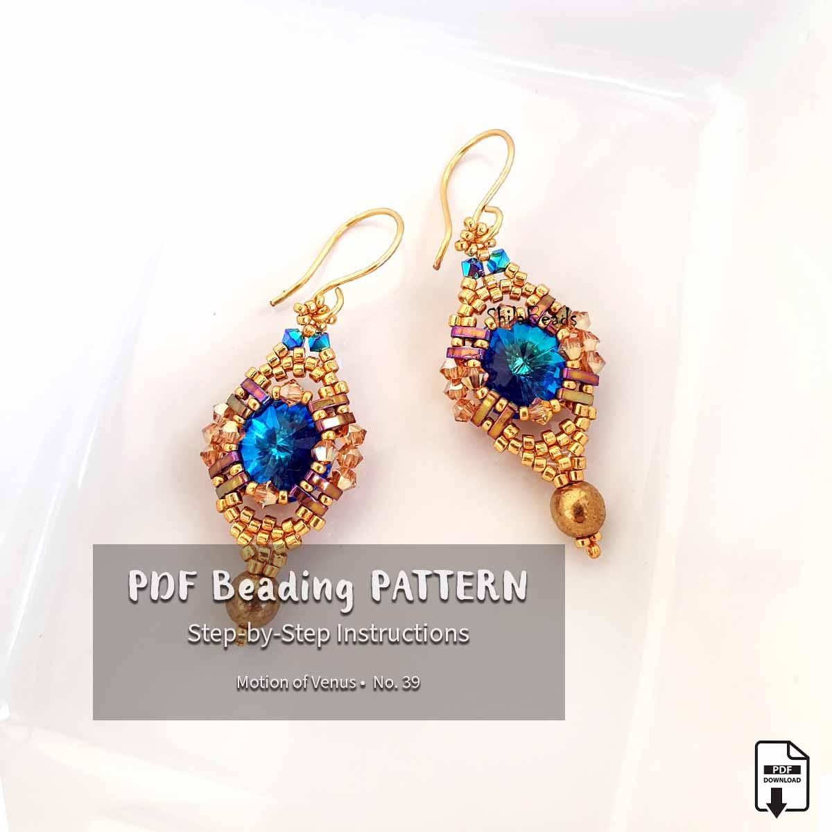 ✨ Instant PDF beading pattern for elegant crystal earrings made with peyote stitch.