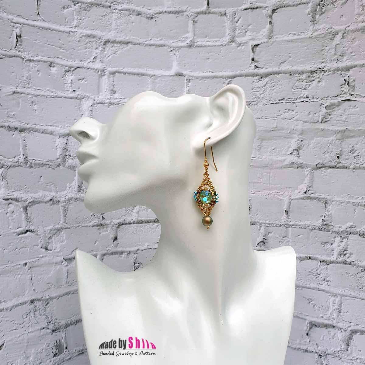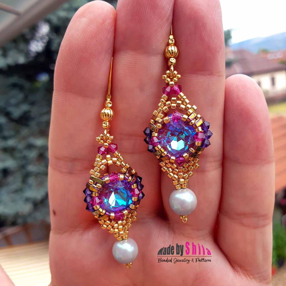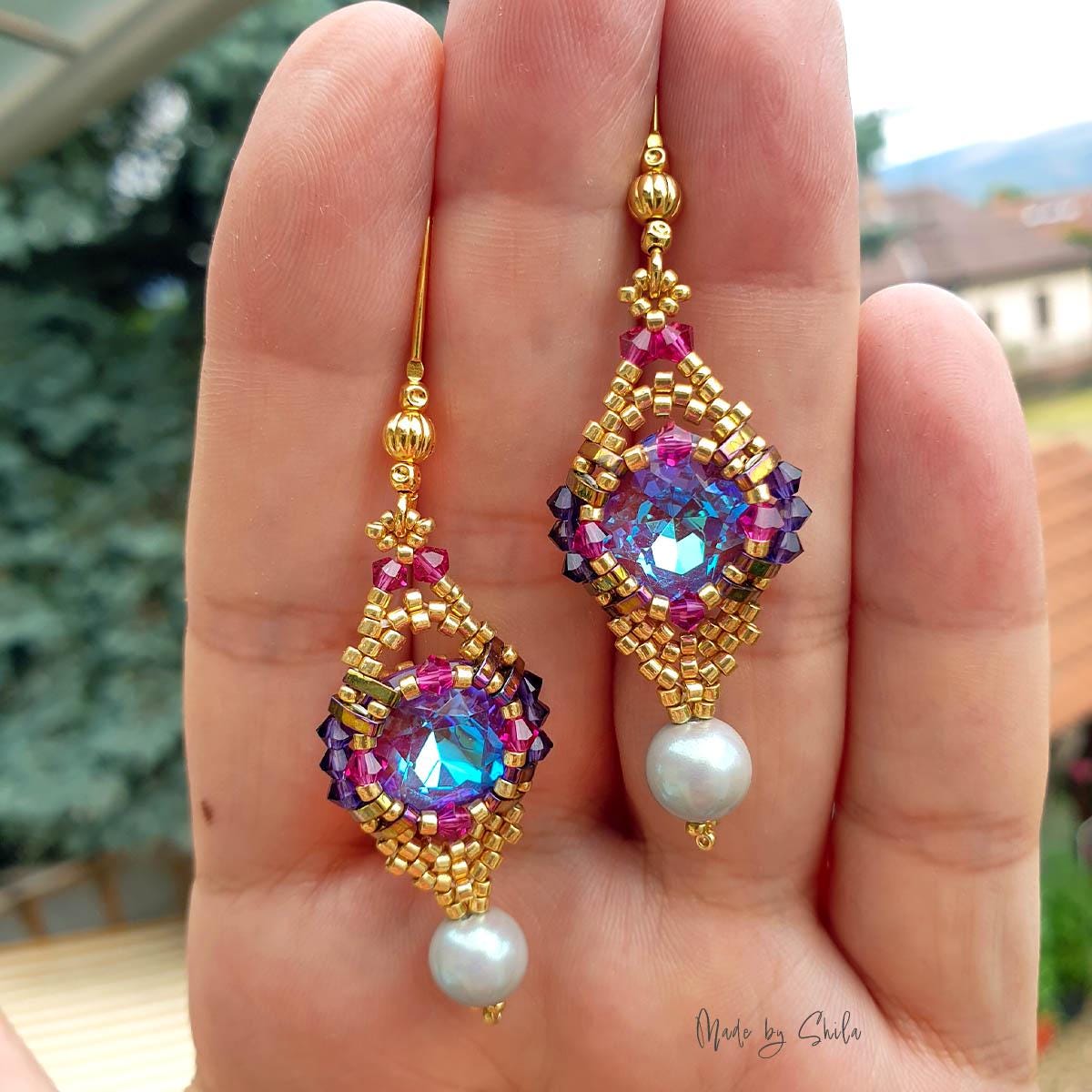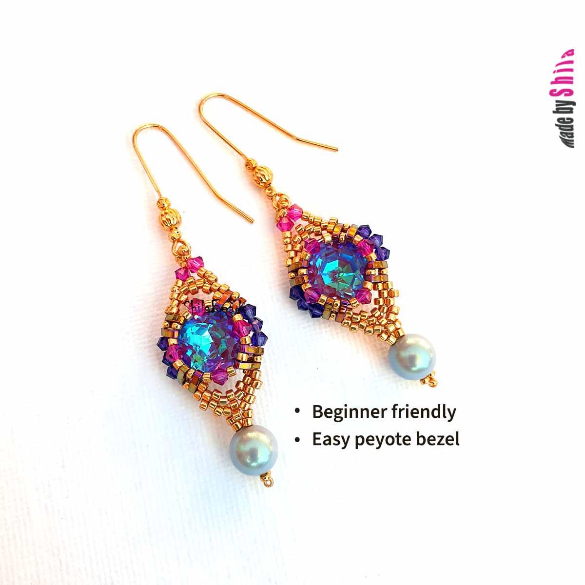 ✨ Instant PDF beading pattern for elegant crystal earrings made with peyote stitch.