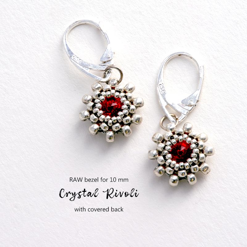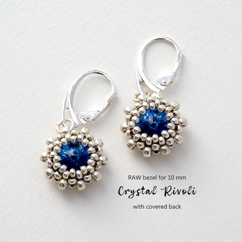 ★★★ This project is suitable for all beading skill levels. It demonstrates how to create a beaded Right-Angle Weave (RAW) setting for a 10 mm (SS47) Crystal Rivoli Round Stone. You can use the completed piece as a standalone pendant, turn it into earrings by adding findings, or incorporate it into another design. ★★★