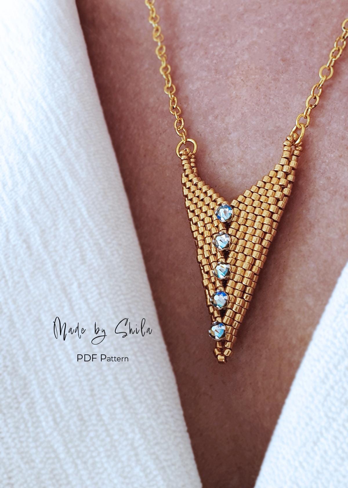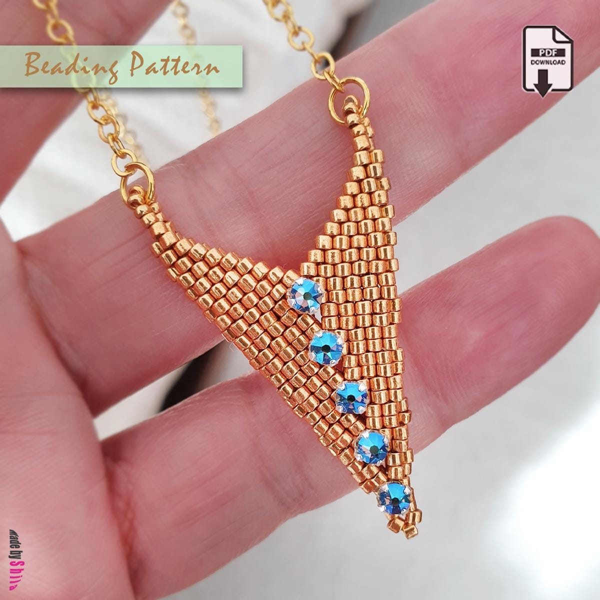 ✨ Learn how to make a stunning beaded triangle pendant with this instant PDF pattern. This step-by-step tutorial teaches circular peyote stitch. Perfect for DIY jewelry making, beaders of all skill levels, and creating matching stud earrings.