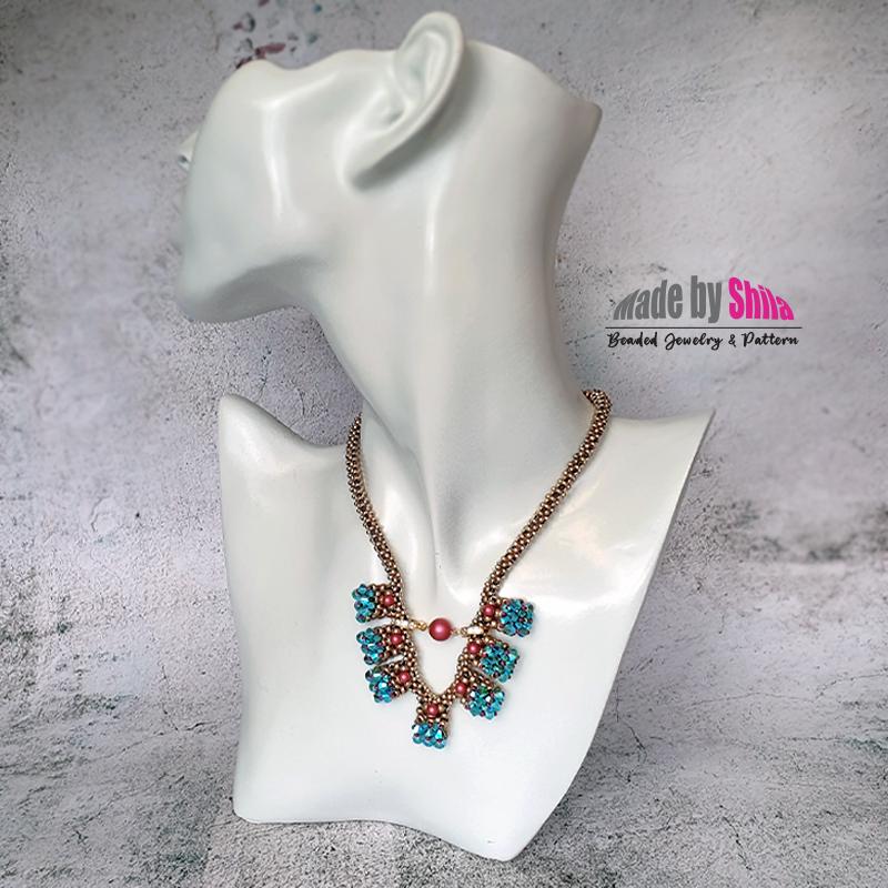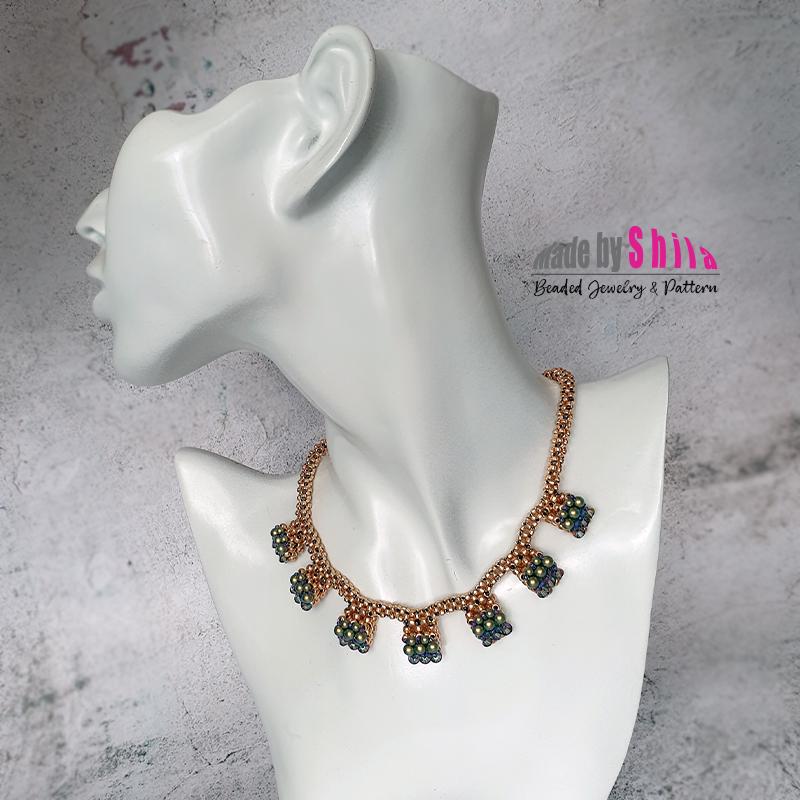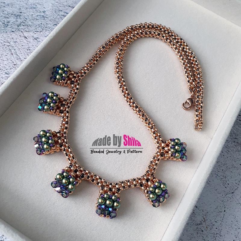Intermediate: If you are good at the CRAW technique, you can easily make this necklace by connecting CRAW units. Depending on whether they are connected on the longer or shorter side, you can make a piece with different effects.