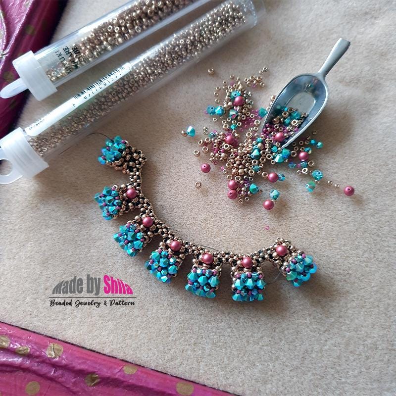 Explore the "Ups & Down Necklace" beading pattern, an advanced jewelry-making tutorial by Shila. This comprehensive guide provides step-by-step instructions, detailed diagrams, and material recommendations to help you create a beautiful necklace using techniques like Right Angle Weave (RAW) and Cubic Right Angle Weave (CRAW). Customize the design with adjustable rope lengths, embellished units, and optional pendants or tassels. Ideal for experienced beaders, this project combines elegance and versatility. ★★★