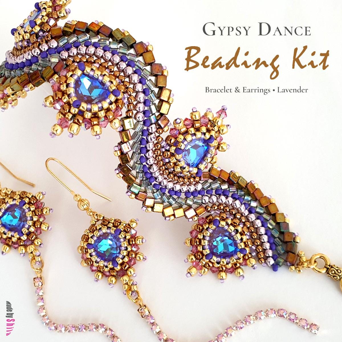 Introducing the Gypsy Dance Bracelet & Earrings Beading Kit, the sister design of one of my most popular beadwork patterns. This DIY jewelry making kit includes everything you need to create a stunning beaded bracelet and matching earrings using beautiful lavender crystals and high-quality Japanese seed beads.
