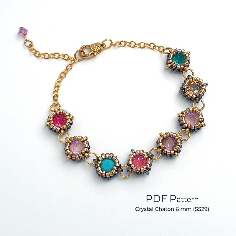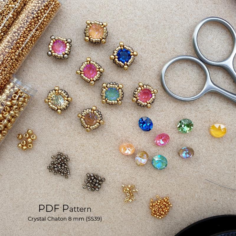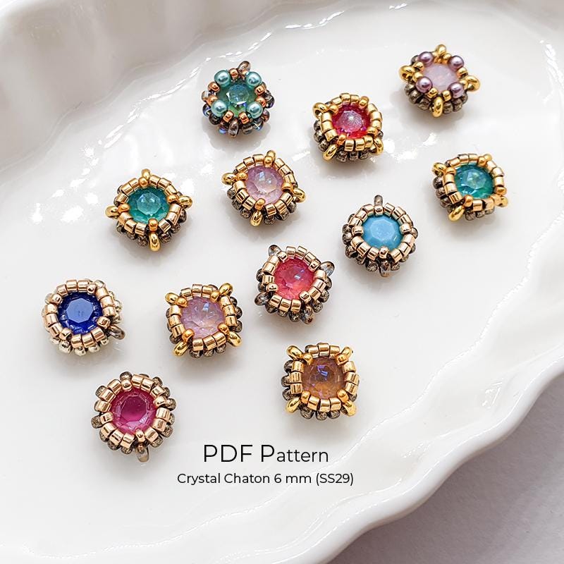 Create stunning crystal jewelry with this Beaded Chaton Bezel Tutorial PDF – includes 2 tutorials for 6 mm (SS29) and 8 mm (SS39) crystal chatons.