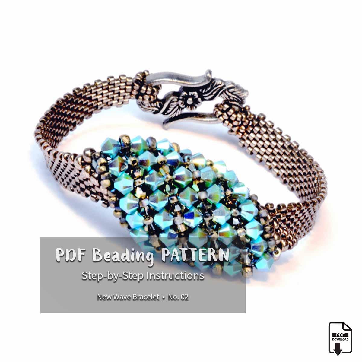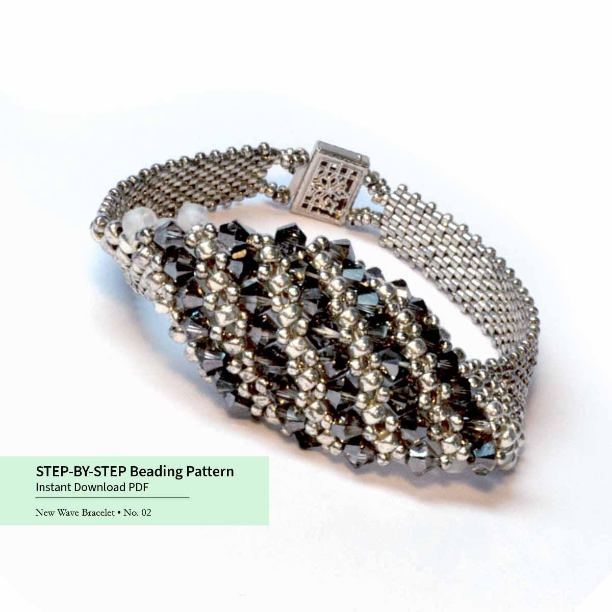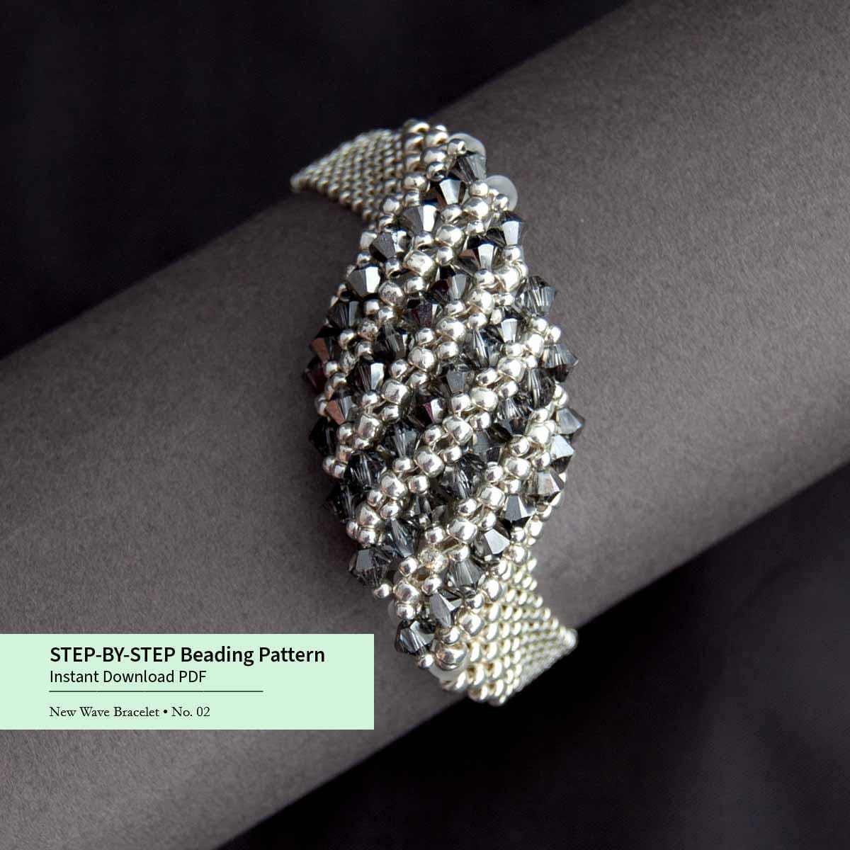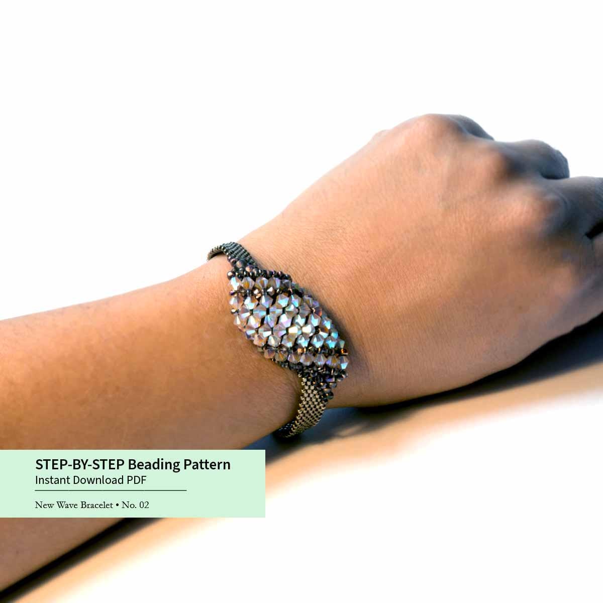 ✨ This unique asymmetrical bracelet features crystal embellishments on the top, created using the RAW (Right Angle Weave) beading technique. The detailed crystal design adds sparkle and texture, making this handmade bracelet an eye-catching statement piece with a modern, artistic look.