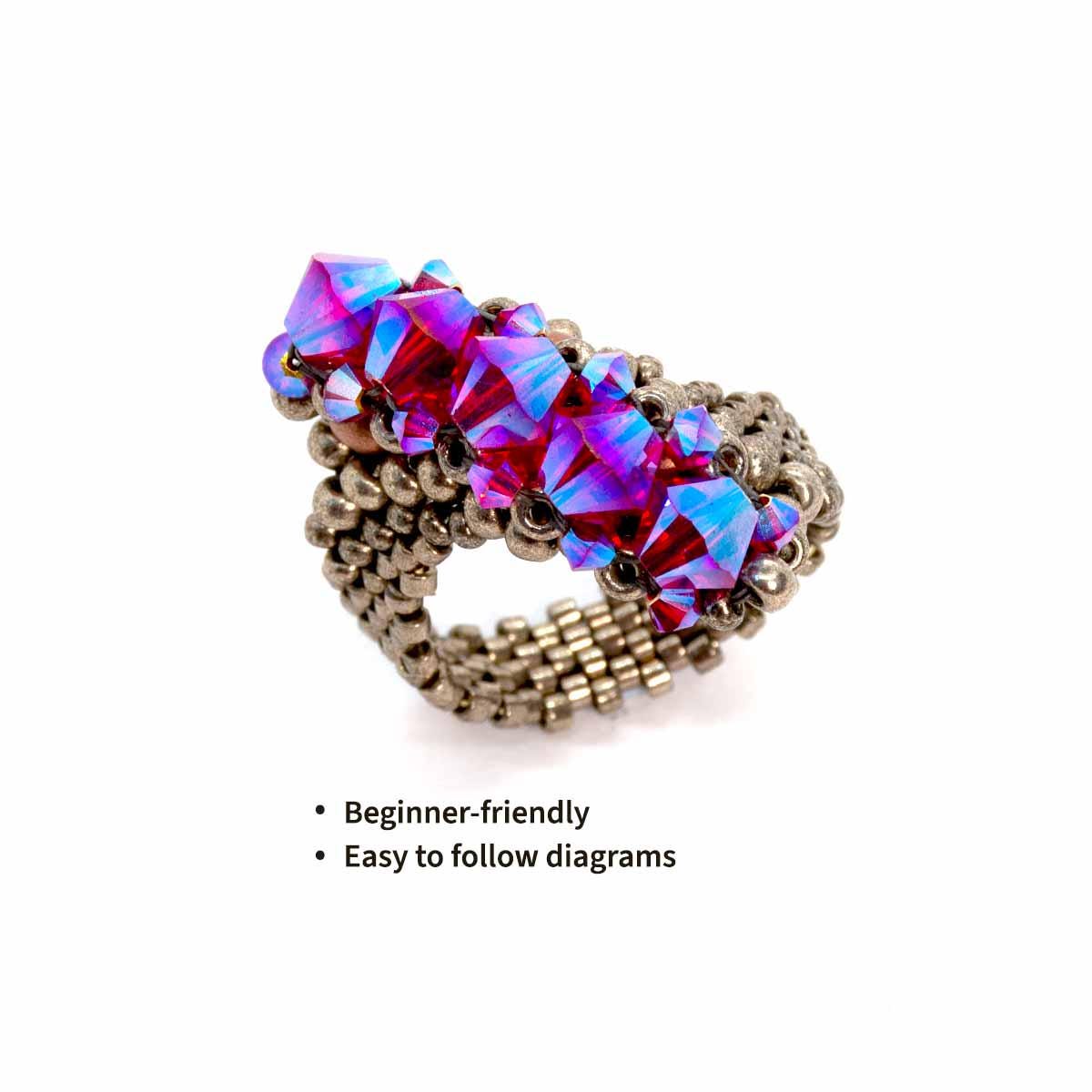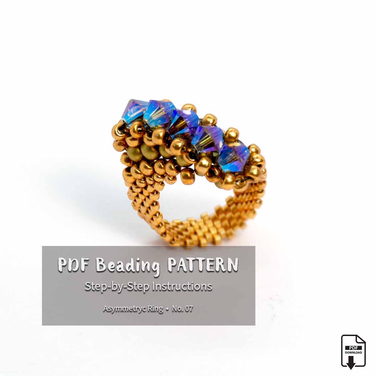 💍 Create your own unique, personalized beaded ring by following this step-by-step beading pattern tutorial. This downloadable PDF beading pattern is designed for beaders who enjoy detailed instructions and elegant asymmetric jewelry designs.