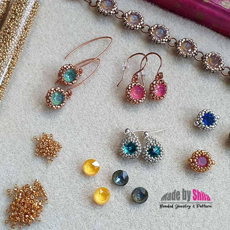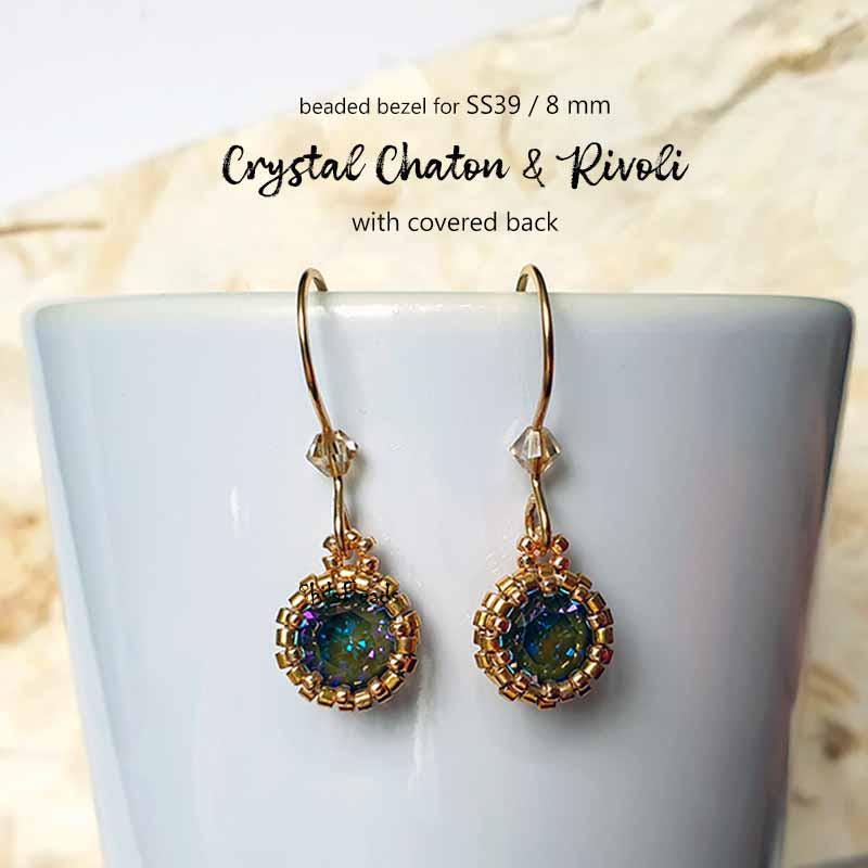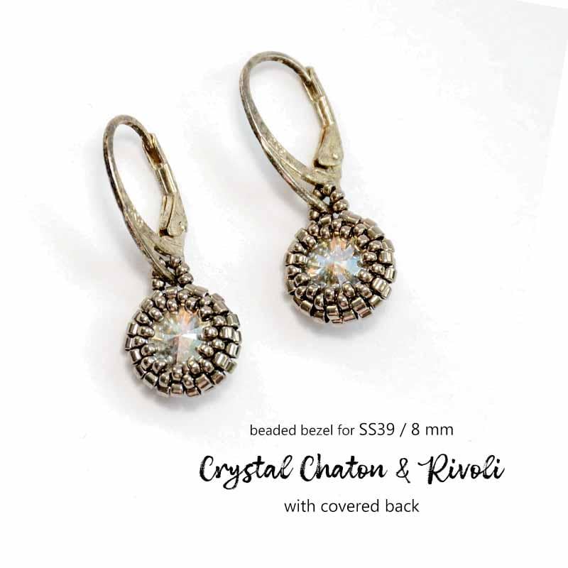 The project is recommended for all beading levels. It shows how to create a beaded Peyote setting for the Crystal Round Stone Chaton and Rivoli 8 mm (SS39). You can use the finished piece as a single pendant or earrings by adding a hanging, or as a part of another design.